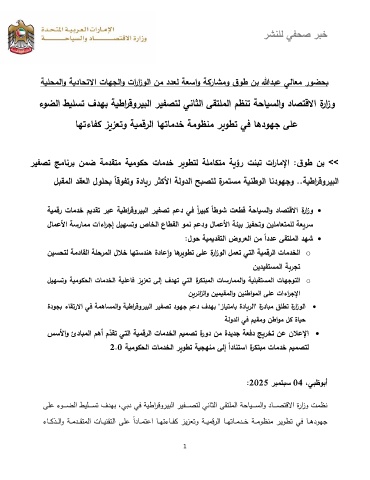ﻰﻠﻋ ءوــــــﻀﻟا طﯿﻠــــــﺴﺘ فدﻬﺒ ، ﻲﺒد ﻲﻓ ﺔﯿطارﻗورﯿﺒﻟا رﯿﻔــــــﺼﺘﻟ ﻲﻨﺎﺜﻟا ﻰﻘﺘﻠﻤﻟا ﺔﺤﺎﯿــــــﺴﻟاو دﺎــــــﺼﺘﻗﻻا ةرازو تﻤظﻨ