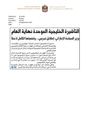 Publication: Al Jarida Country: Kuwait Circulation: 39,100 Date: 30 September 2025 Page: 1