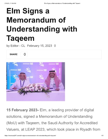 2/16/23, 11:09 AM Elm Signs a Memorandum of Understanding with Taqeem