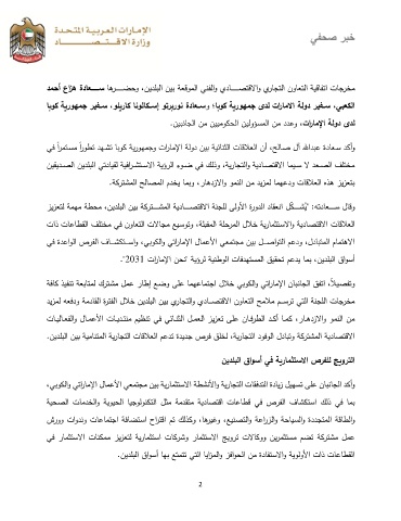 يف م ارمتااسم م ارووت دهاافت ابوك ةيروهمجو تاراماا ةلود نيب ةيئانثلا تاقلاعلا نأ ،نلاااص ل آادبع ةداعااس دكأو