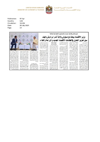 Publication: Al Fajr Country: UAE Circulation: 34,596 Date: 26 July 2025 Page: 14