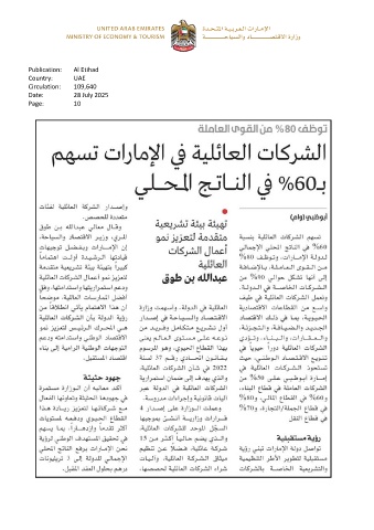 Publication: Al Etihad Country: UAE Circulation: 109,640 Date: 28 July 2025 Page: 10