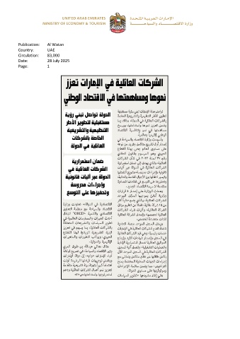 Publication: Al Watan Country: UAE Circulation: 83,000 Date: 28 July 2025 Page: 1