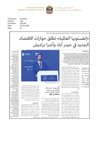 Publication: Al Etihad Country: UAE Circulation: 109,640 Date: 25 July 2025 Page: 13