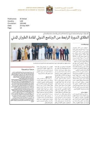 Publication: Al Etihad Country: UAE Circulation: 109,640 Date: 23 July 2025 Page: 19