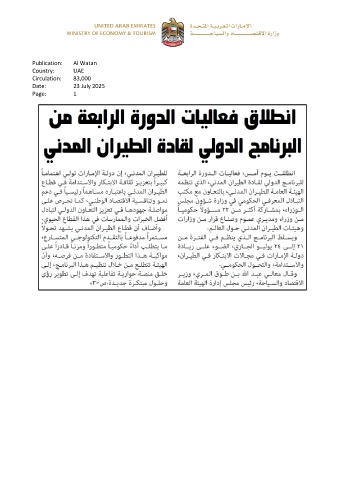 Publication: Al Watan Country: UAE Circulation: 83,000 Date: 23 July 2025 Page: 1