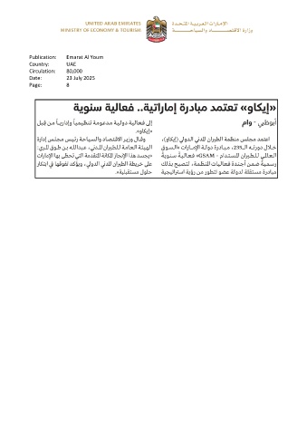 Publication: Emarat Al Youm Country: UAE Circulation: 80,000 Date: 23 July 2025 Page: 8