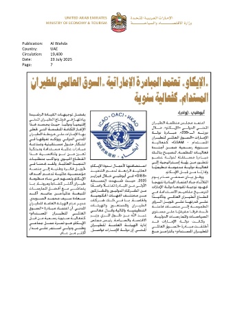 Publication: Al Wahda Country: UAE Circulation: 19,400 Date: 23 July 2025 Page: 7