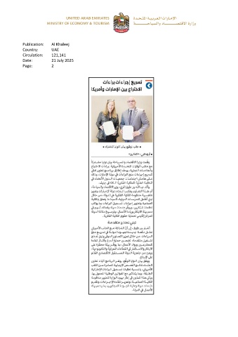 Publication: Al Khaleej Country: UAE Circulation: 121,141 Date: 21 July 2025 Page: 2