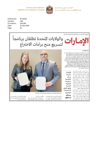 Publication: Al Etihad Country: UAE Circulation: 109,640 Date: 21 July 2025 Page: 16