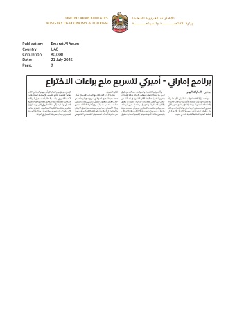 Publication: Emarat Al Youm Country: UAE Circulation: 80,000 Date: 21 July 2025 Page: 9