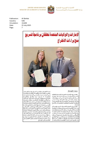 Publication: Al Wahda Country: UAE Circulation: 19,400 Date: 21 July 2025 Page: 7