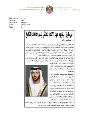 Publication: Al Fajr Country: UAE Circulation: 34,596 Date: 19 July 2025 Page: 6