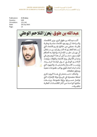 Publication: Al Khaleej Country: UAE Circulation: 121,141 Date: 18 July 2025 Page: 13