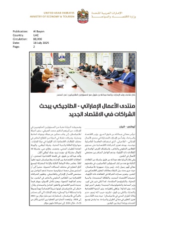 Publication: Al Bayan Country: UAE Circulation: 88,000 Date: 18 July 2025 Page: 2