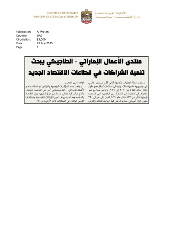 Publication: Al Watan Country: UAE Circulation: 83,000 Date: 18 July 2025 Page: 1