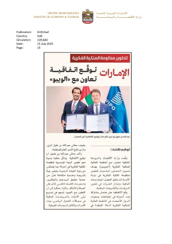 Publication: Al Etihad Country: UAE Circulation: 109,640 Date: 15 July 2025 Page: 15