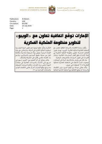 Publication: Al Watan Country: UAE Circulation: 83,000 Date: 15 July 2025 Page: 1