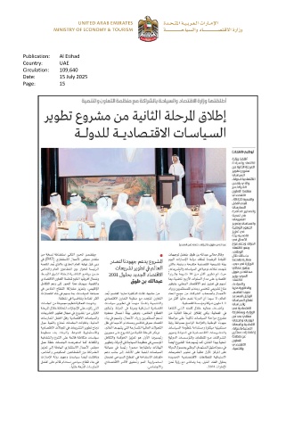 Publication: Al Etihad Country: UAE Circulation: 109,640 Date: 15 July 2025 Page: 15