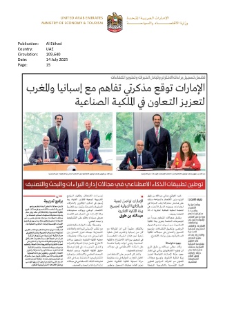 Publication: Al Etihad Country: UAE Circulation: 109,640 Date: 14 July 2025 Page: 15