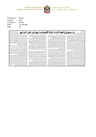 Publication: Al Fajr Country: UAE Circulation: 34,596 Date: 11 July 2025 Page: 14
