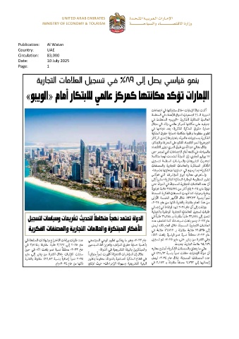 Publication: Al Watan Country: UAE Circulation: 83,000 Date: 10 July 2025 Page: 1