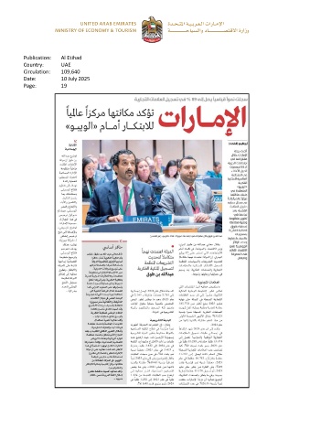 Publication: Al Etihad Country: UAE Circulation: 109,640 Date: 10 July 2025 Page: 19
