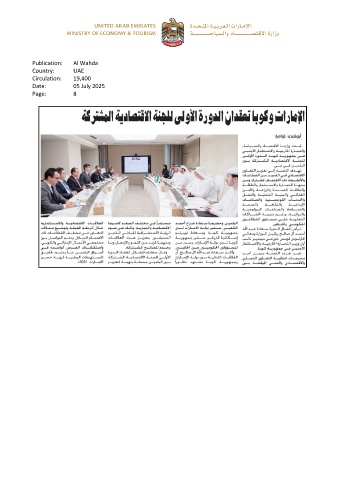 Publication: Al Wahda Country: UAE Circulation: 19,400 Date: 05 July 2025 Page: 8