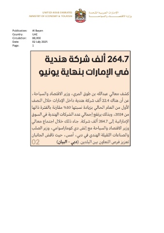 Publication: Al Bayan Country: UAE Circulation: 88,000 Date: 02 July 2025 Page: 1