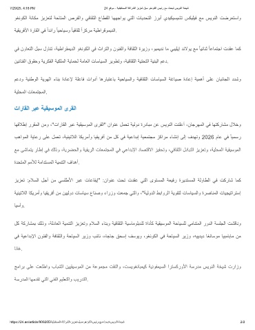 لﻛ ﺔﻛرﺎﺷﻣﺑ كﻟذو ،ﺔﻟدﺎﻌﻟا ﺔﯾﻣﻧﺗﻟا زﯾزﻌﺗو مﻼﺳﻟا ءﺎﻧﺑو ﺔﯾﻓﺎﻘﺛﻟا ﺔﯾﺳﺎﻣوﻠﺑدﻠﻟ ةادﺄﻛ ﺔﯾﻘﯾﺳوﻣﻟا ﺔﺣﺎﯾﺳﻠﻟ ﻲﻣﺎﻧﺗﻣﻟا رودﻟا ﺔﺳﻠﺟﻟا تﺷﻗﺎﻧو