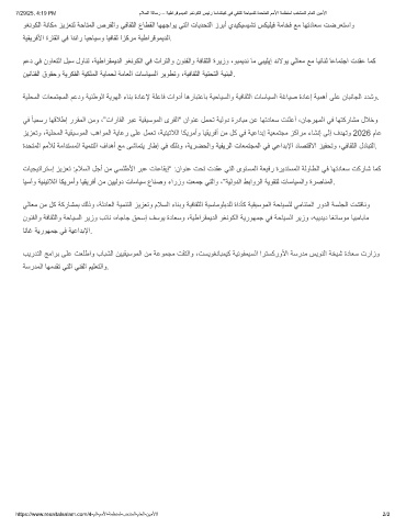 مﻋد ﻲﻓ نوﺎﻌﺗﻟا لﺑﺳ لوﺎﻧﺗ ،ﺔﯾطارﻘﻣﯾدﻟا وﻐﻧوﻛﻟا ﻲﻓ ثارﺗﻟاو نوﻧﻔﻟاو ﺔﻓﺎﻘﺛﻟا ةرﯾزو ،وﺑﻣﯾدﻧ ﺎﻣ ﻲﺑﯾﻠﯾإ دﻧﻻوﯾ ﻲﻟﺎﻌﻣ ﻊﻣ ﺎﯾﺋﺎﻧﺛ ﺎﻋﺎﻣﺗﺟا تدﻘﻋ ﺎﻣﻛ