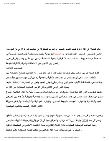 زﯾزﻌﺗ ﻲﻓ ﻰﻘﯾﺳوﻣﻟاو نوﻧﻔﻟا رود لﯾﻌﻔﺗو ،ﺔﻣادﺗﺳﻣﻟا ﺔﯾﺣﺎﯾﺳﻟاو ﺔﯾﻓﺎﻘﺛﻟا تﺎﺳﺎﯾﺳﻟا مﻋد فدﮭﺑ ،ﺎﺳﺎﺷﻧﯾﻛ ﺔﻣﺻﺎﻌﻟا