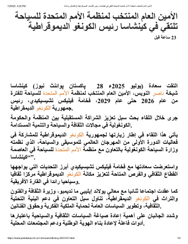 ةﺮﺘﻔﻠﻟ ﺔﺣﺎﯿﺴﻠﻟ ةﺪﺤﺘﻤﻟا ﻢﻣﻷا ﺔﻤﻈﻨﻤﻟ ﺐﺨﺘﻨﻤﻟا مﺎﻌﻟا ﻦﯿﻣﻷا ،ﺲﯾﻮﻨﻟا ﺮﺻﺎﻧ ﺔﺨﯿﺷ