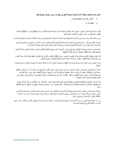 ىقيسوملل يملاعلا ناجرهملا نم ىلولأا ةرودلا تايلاعف يف ةكراشملل ةيطارقوميدلا وغنوكلا ةيروهمجل اهترايز راطإ يف ءاقللا اذه يتأي