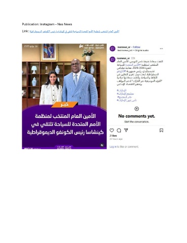 Publication: Instagram – Nas News Link: ةيطارقوميدلا وغنوكلا سيئر اساشنيك يف يقتلت ةحايسلل ةدحتلما مملأا ةمظنلم بختنلما ماعلا نيملأا