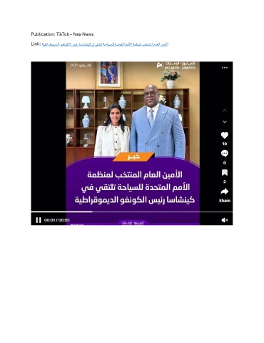 Publication: TikTok – Nas News Link: ةيطارقوميدلا وغنوكلا سيئر اساشنيك يف يقتلت ةحايسلل ةدحتلما مملأا ةمظنلم بختنلما ماعلا نيملأا