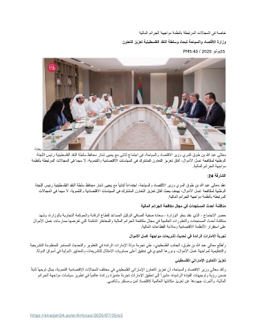 ةنجللا سيئر ةينيطسلفلا دقنلا ةطلس ظفاحم رانش ىيحي عم ًايئانث ًاعامتجا ،ةحايسلاو داصتقلاا ريزو يرملا قوط نب الله دبع يلاعم دقع