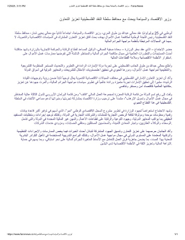 7/29/25, 3:15 PM نوﺎﻌﺗﻟا زﯾزﻌﺗ ﺔﯾﻧﯾطﺳﻠﻔﻟا دﻘﻧﻟا ﺔطﻠﺳ ظﻓﺎﺣﻣ ﻊﻣ ثﺣﺑﯾ ﺔﺣﺎﯾﺳﻟاو دﺎﺻﺗﻗﻻا رﯾزو - Fana News