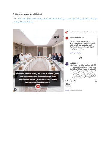 Publication: Instagram – Al Etihad Link: ةهجاوم تلااجم يف تاربخلا لدابتو نواعتلا لبس ةينيطسلفلا دقنلا ةطلس ظفاحم عم ثحبي ،ةحايسلاو داصتقلاا ريزو ،يرلما قوط نب اللهدبع يلاعم باهرلإا ليومت ةحفاكمو لاوملأا لسغ