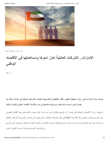 7/29/25, 3:31 PM ﻲﻧطوﻟا دﺎﺻﺗﻗﻻا ﻲﻓ ﺎﮭﺗﻣھﺎﺳﻣو ﺎھوﻣﻧ ززﻌﺗ ﺔﯾﻠﺋﺎﻌﻟا تﺎﻛرﺷﻟا ..تارﺎﻣﻹا
