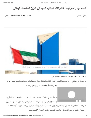 7/29/25, 3:31 PM ﻲﻧطوﻟا دﺎﺻﺗﻗﻻا زﯾزﻌﺗ ﻲﻓ مﮭﺳﺗ ﺔﯾﻠﺋﺎﻌﻟا تﺎﻛرﺷﻟا ..ﺔﯾﺗارﺎﻣإ حﺎﺟﻧ ﺔﺻﻗ