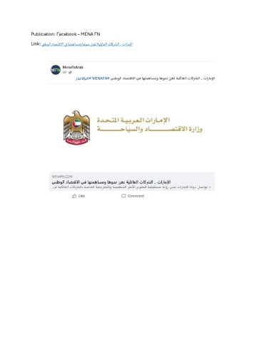 Publication: Facebook – MENA FN ٔ Link: ينطولا داصتقلاا يف اهتمهاسمو اهومن ززعت ةيلياعلا تاكرشلا .. تارامٕلاا
