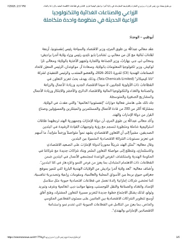 7/29/25, 2:57 PM ءاذﻐﻟاو ﺔﻋارزﻟاو دﯾدﺟﻟا دﺎﺻﺗﻗﻻا تﺎﻋﺎطﻗ ﻲﻓ نوﺎﻌﺗﻟا زﯾزﻌﺗ ﺔﯾدﻧﮭﻟا شﯾدارﺑ اردﻧأ ﺔﯾﻻو ﻲﻓ تﺎﻣوﻠﻌﻣﻟا ﺎﯾﺟوﻟوﻧﻛﺗو ةرﺎﺟﺗﻟا يرﯾزوو ءارزوﻟا سﯾﺋر ﻊﻣ ثﺣﺑﯾ قوط نﺑ