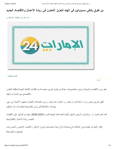 7/29/25, 2:58 PM 24 تارﺎﻣﻹا | دﯾدﺟﻟا دﺎﺻﺗﻗﻻاو لﺎﻣﻋﻷا ةدﺎﯾر ﻲﻓ نوﺎﻌﺗﻟا زﯾزﻌﺗﻟ دﻧﮭﻟا ﻲﻓ نﯾﻟوؤﺳﻣ ﻲﻘﺗﻠﯾ قوط نﺑ