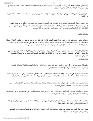 نوﺎﻌﺘﻟا ﺔﻠﺻاﻮﻣ ﻰﻟإ ﻊﻠﻄﺘﻧو ،يرﺎﻤﺜﺘﺳﻻاو يدﺎﺼﺘﻗﻻا ﺪﯿﻌﺼﻟا ﻰﻠﻋ تارﺎﻣﻹا ﺔﻟوﺪﻟ ً ﺎﯾرﻮﺤﻣ ً ﺎﻜﯾﺮﺷ ﺪﻨﮭﻟا ﻞﺜﻤﺗ» :ﮫﯿﻟﺎﻌﻣ لﺎﻗو