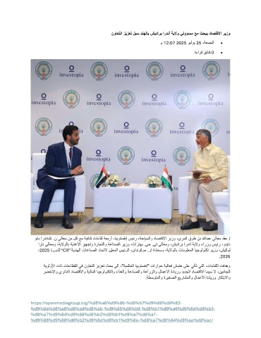 نواعتلا زيزعت لبس دنهلاب شيدارب اردنأ ةيلاو يلوؤسم عم ثحبي داصتقلاا ريزو