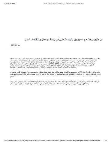 7/29/25, 3:01 PM نﯾوﺎﻧﻌﻟا - دﯾدﺟﻟا دﺎﺻﺗﻗﻻاو لﺎﻣﻋﻷا ةدﺎﯾر ﻲﻓ نوﺎﻌﺗﻟا دﻧﮭﻟﺎﺑ نﯾﻟوؤﺳﻣ ﻊﻣ ثﺣﺑﯾ قوط نﺑ