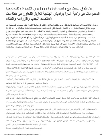 ﺔﻛارﺷﻟا مﻋد صرﻓ ﺔﺷﻗﺎﻧﻣﻟ ﺔﯾدﻧﮭﻟا تﺎﻋﺎﻧﺻﻟا دﺎﺣﺗﻻ نّﯾﻌﻣﻟا سﯾﺋرﻟا ﻲﻘﺗﻠﯾ ﺔﺣﺎﯾﺳﻟاو دﺎﺻﺗﻗﻻا رﯾزو • ﺔﯾدﻧﮭﻟا ﺔﻣوﻛﺣﻟا ﻲﻓ ﺎﻧﺋﺎﻛرﺷ ﻊﻣ