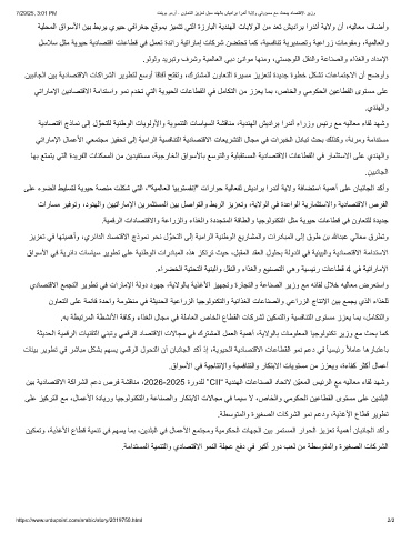 يدﺎﺻﺗﻗﻻا ﻊﻣﺟﺗﻟا رﯾوطﺗ ﻲﻓ تارﺎﻣﻹا ﺔﻟود دوﮭﺟ ،ﺔﯾﻻوﻟﺎﺑ ﺔﯾذﻏﻷا زﯾﮭﺟﺗو ةرﺎﺟﺗﻟاو ﺔﻋﺎﻧﺻﻟا رﯾزو ﻊﻣ ﮫﺋﺎﻘﻟ لﻼﺧ ﮫﯾﻟﺎﻌﻣ ضرﻌﺗﺳاو