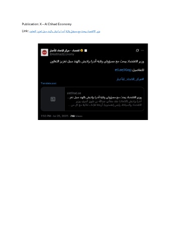 Publication: X – Al Etihad Economy Link: نواعتلا زيزعت لبس دنهلاب شيدارب اردنأ ةيلاو يلوؤسم عم ثحبي داصتقلاا ريزو